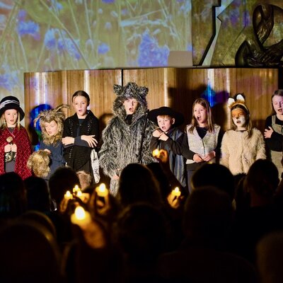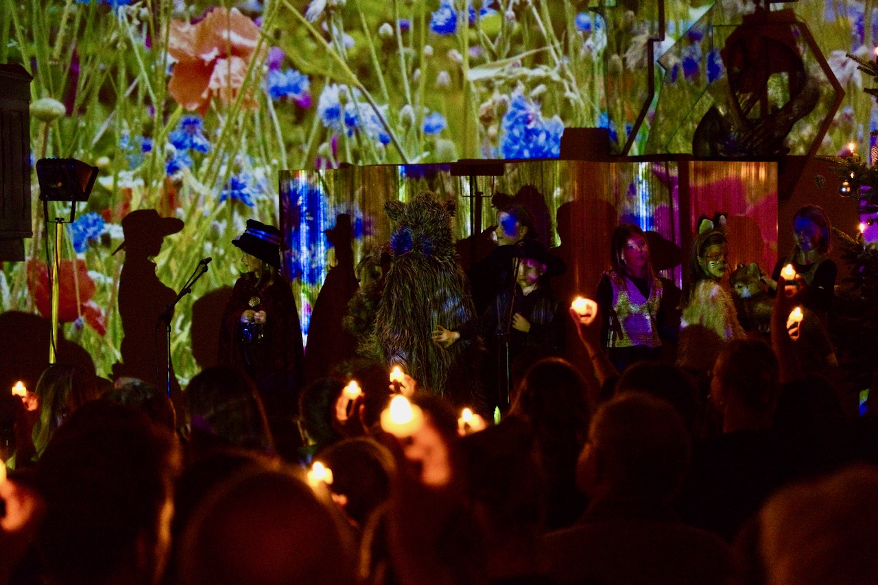 Im musikalischen Krippenspiel, das am vierten Advent aufgeführt wurde, verbreitete eine Räuberfamilie Angst und Schrecken. Dann kam es in einem Blumengarten im nahen Städtchen zu einer schicksalhaften Begegnung mit einer Gräfin und ihrem Gärtner. Ein gemeinsamer Weg in den dunklen Winterwald öffnete den Blick auf das Wunder der Weihnachtsnacht. Als Misstrauen alles zu zerstören drohte, entfaltete sich nach und nach das Geheimnis der Christrose und mit der Rückkehr der Räuberfamilie unter die Menschen fand alles ein gutes Ende.