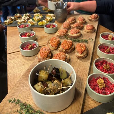 Das Ganze findet im Restaurant Zur Werkstatt statt – ein Ort, der mit seinem besonderen Ambiente perfekt zu unserem Anlass passt. Zwischen Tischen voller Köstlichkeiten und gut gelaunten Teammitgliedern entsteht eine herzliche, unkomplizierte Atmosphäre, die noch lange nachklingt.