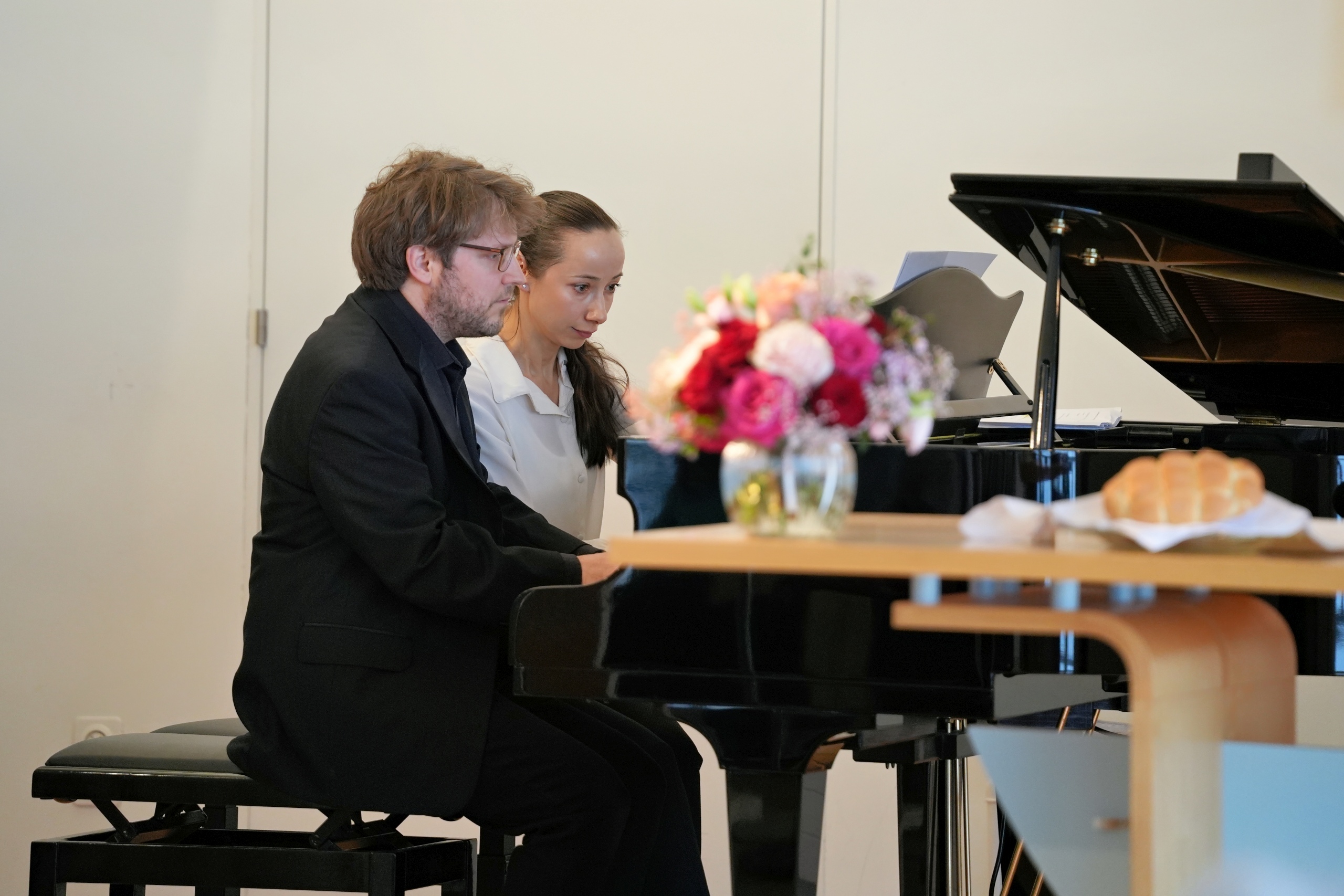 Christina Wagner und Christian Sanders nahmen die Gottesdienstbesucherinnen und -besucher mit auf eine Reise in die Klangwelten von Schubert, Rachmaninoff und Saint-Saëns. In ihrem Duo zu vier Händen belebten die Künstler den Gottesdienst auf eine einzigartige, melodische Weise.