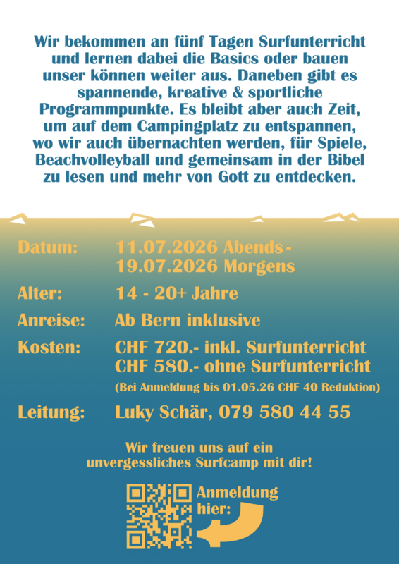 Im 2024 fand das Konflager in Biscarrosse-plage an der Atlantikküste von Frankreich statt. Inspirierende, tolle und erlebnisreiche Tage mit Suchtpotential.